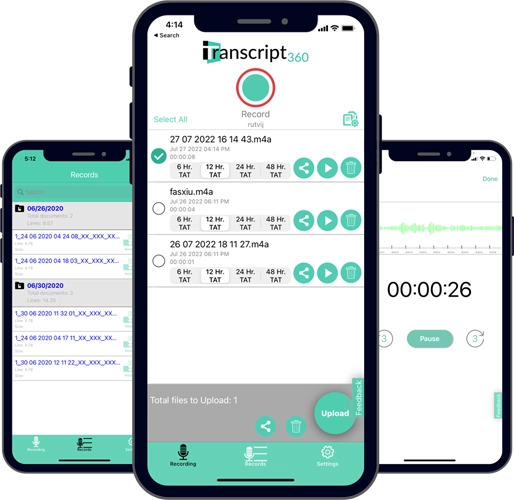 TAT — 6, 12, 24, or 48 hours and upload it for transcription